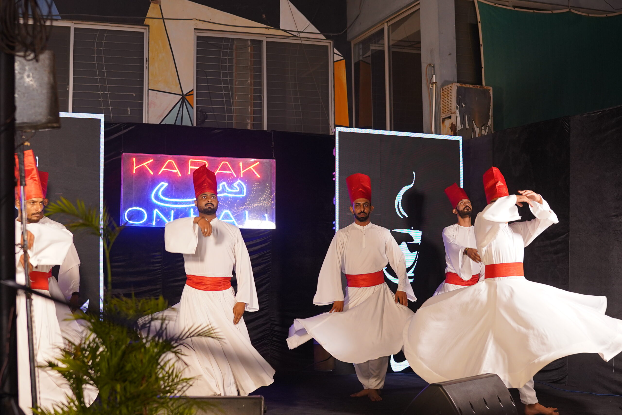 At the back, live Sufi performers created a powerful visual and musical presence. Dressed in traditional attire, their chants and instruments carried centuries of Sufi heritage, adding a rich cultural layer to the night.